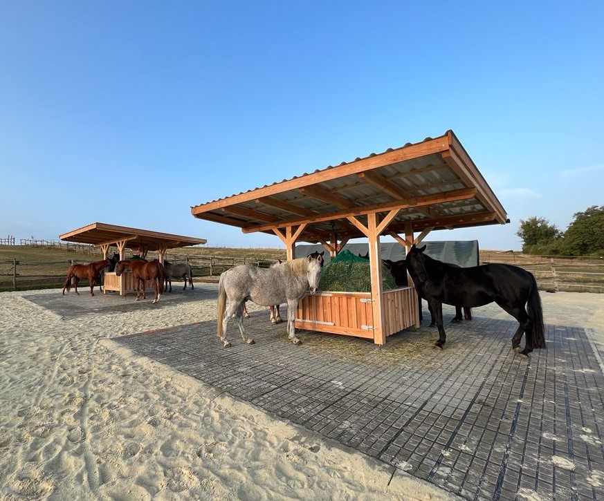 Wir haben nach super Beratung durch die Firma dieses Bodensystem rund um unsere 5 Heuraufen für Pferde verlegt. Fast keinen Unterbau gemacht (genau nach deren Empfehlung) und schaut super aus! Wir füllen das Heu mit dem Traktor nach und fahren daher regelm. über die Flächen - alles kein Problem. Auch zum Sauberhalten perfekt (wir machen das 1x wöchentlich mit einem Schild am Traktor). Planen heuer noch einen neuen Parkplatz für unseren Einstellbetrieb damit!